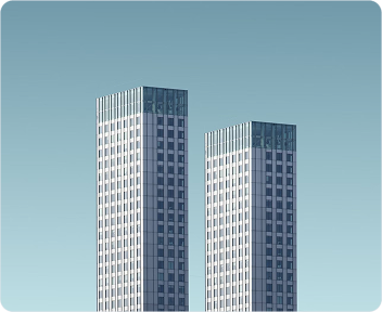 Here are two tall buildings with sleek glass facades,